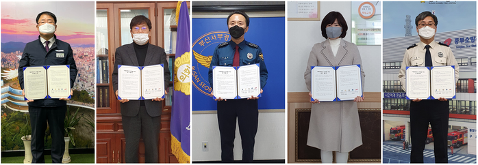 서구는 5일 공한수 서구청장, 이석희 서구의회 의장, 박성호 서부경찰서장, 서성희 서부교육지원청 교육장, 김헌우 중부소방서장이 비대면 서면협약방식으로 업무협약을 체결했다고 밝혔다.