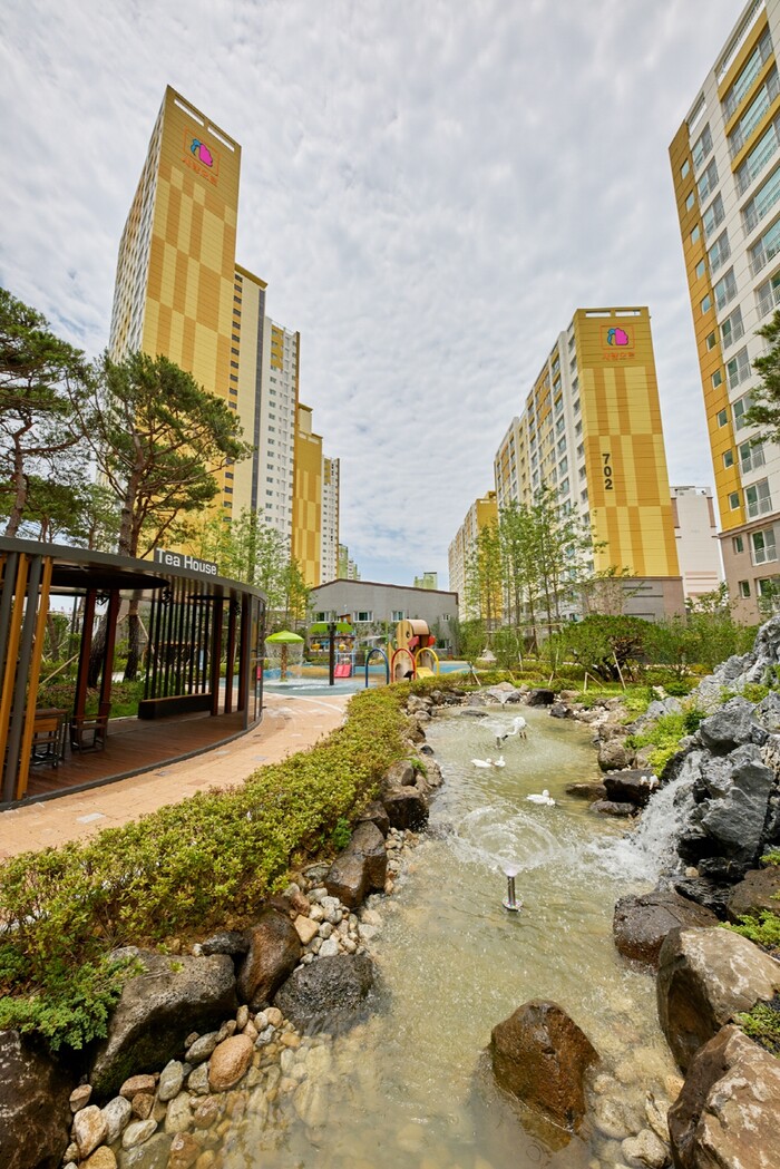 단지는 다양한 특화설계를 적용해 입주민들의 만족도를 극대화했다. 단지 내에는 소나무 ‧ 대왕참나무길 등의 산책로를 조성하고 주민 운동시설, 티하우스, 석가산과 생태연못, 물놀이터 등을 설치해 멀리 나가지 않아도 단지 내에서 시원한 물줄기를 감상하면서 티타임과 휴식, 가벼운 산책이 가능하게끔 단지를 조성했다.