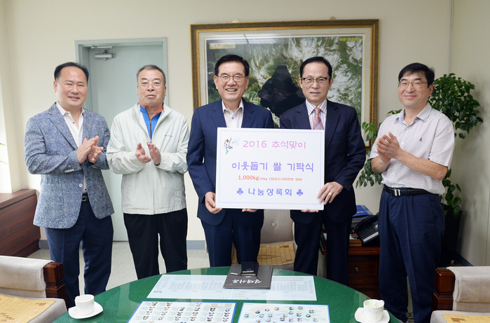 이날류병호 나눔상록회장을 비롯해 운영위원 등 6명은 유덕열 동대문구청장에게 쌀을 기탁하고 환담을 나눴다.