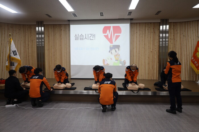 교육은 16일을 시작으로 각 센터 및 구조대 직원들까지 전직원을 대상으로 진행될 예정이며 교육내용은 기본 심폐소생술 및 자동심장충격기 사용법 등 이론 교육을 먼저 진행하고 마네킹을 이용한 반복 실습을 통해 충분히 몸에 익힐 수 있도록 하였다.