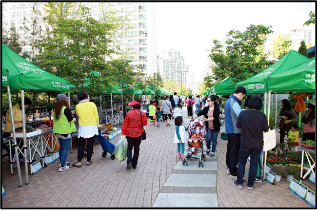 | ▲안성시는 지난달 28일 공도읍 공도도서관옆 도시공원 산책로변에서 직거래 주말장터를 개장했다.(안성시 제공) |