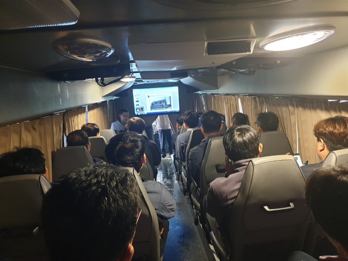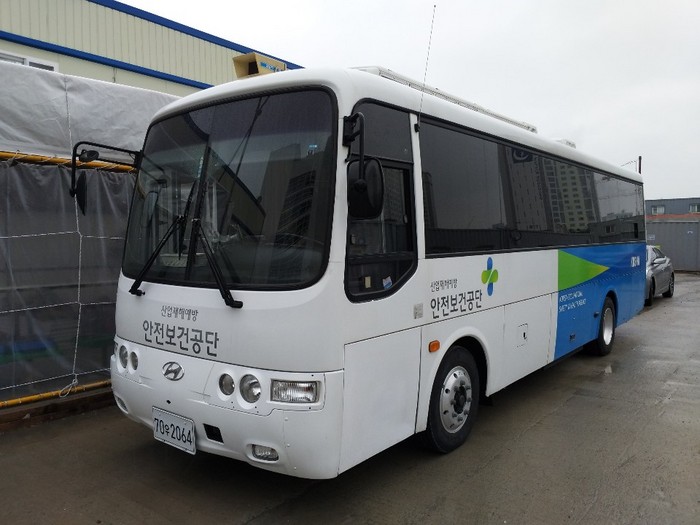 이날 실시한 안전보건교육은 부산시 강서구 명지동 일원 건설현장 밀집지역에서 건설현장 노동자를 대상으로 이동버스 내에서 ‘건설현장 재해사례 및 안전보건관리’를 주제로 교육을 진행했다.