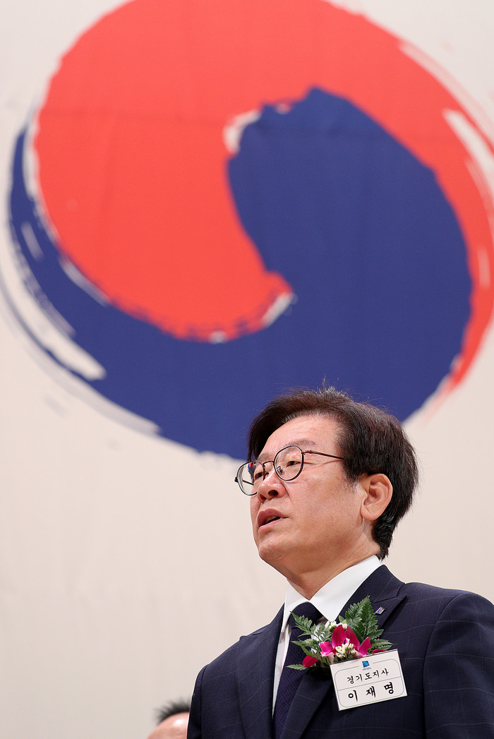 | ▲15일 오전 경기도 경제과학진흥원에서 열린 제73주년 광복절 경축식에서 이재명 경기도지사가 경축사를 하고 있다. |