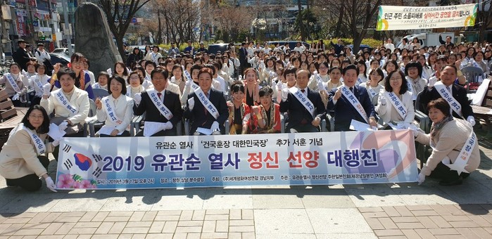 | ▲지난 17일 창원시 상남 분수광장을 시작으로 펼쳐진 유관순 열사 정신 선양 대행진 기념사진. |