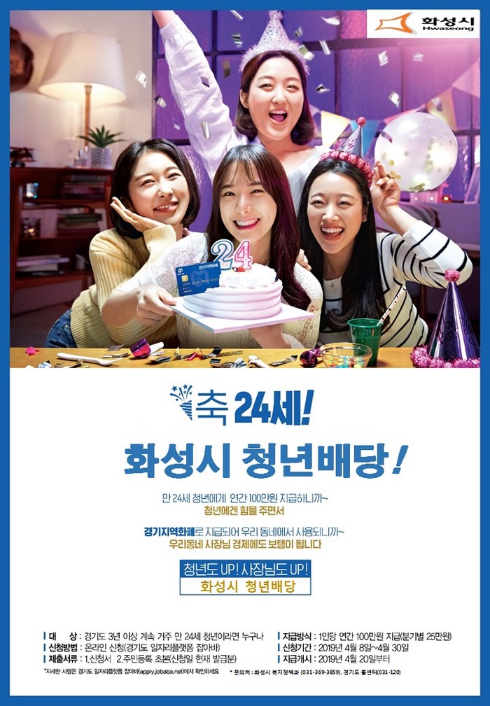 박민철 복지정책과장은 “청년배당은 청년들이 미래를 안정적으로 준비할 수 있도록 도움을 주는 것”이라며 “지역화폐 지급을 통한 지역경제 활성화에도 큰 기여를 하게 될 것”이라고 말했다.