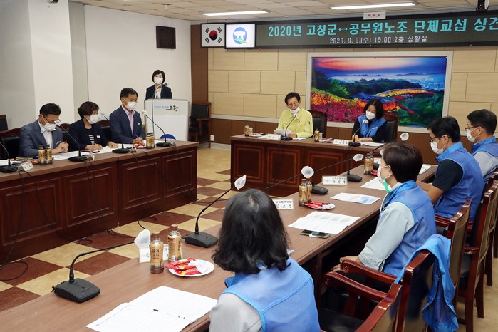 [로컬세계 김경락 기자]전북 고창군이 지난 9일 오후 군청 2층 상황실에서 유기상 고창군수, 안남귀 고창군공무 노조위원장 등 노사 양측 교섭위원 20여 명이 참석한 가운데 ‘2020년 단체교섭 협의를 위한 상견례 및 제1차 실무교섭위원회’를 가졌다고 10일 밝혔다.