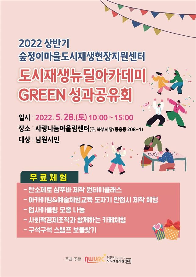 [로컬세계 이태술 기자]전북 남원시는 오는 28일 사랑나눔어울림센터(동충동208-1)에서 ‘남원시 2022 상반기 도시재생뉴딜아카데미 성과공유회’를 진행한다고 23일 밝혔다.