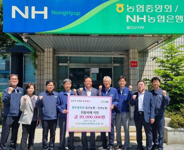 남서울농협(조합장 안용승)은 6일 농협 울진군지부를 방문해 지난 3월 역대급 기록을 남긴 산불피해 복구지원을 위한 기부금을 전달했다.