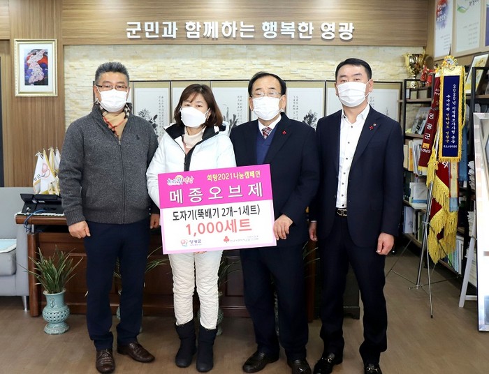 [로컬세계 오승용 기자]전남 영광군은 지난달 31일 ㈜메종오브제 임영숙 대표가 '희망2021 나눔캠페인'에 참여, 영광군에 4000만원 상당의 생활도자기 냄비세트 1000세트를 기탁했다고 4일 밝혔다.