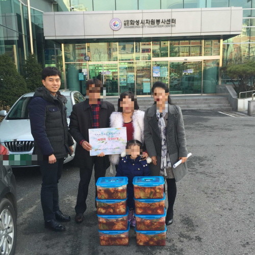 | ▲화성서부서 관계자가 북한이탈주민들에게 김치를 전달하고 있다. |
