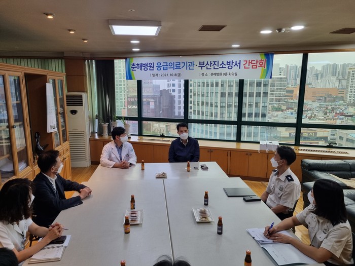 ▲부산 춘해병원과의 간담회 모습. 진소방서 제공 |