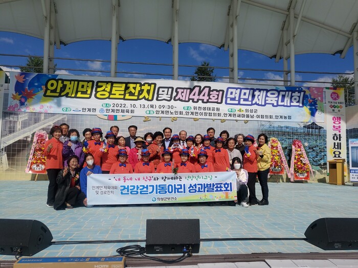 [로컬세계=박상진 기자]경북 의성군(군수 김주수) 안계면의 건강걷기동아리 회원들이 지난 13일 안계면 체육대회 및 경로잔치에 참여해 그동안 갈고 닦은 건강체조 실력을 뽐냈다.