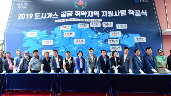 [로컬세계 고용주 기자]경기 화성시는 26일 향남읍 동오리 마을회관 앞 광장에서 사업 대상 19개 마을 대표, 주민 등 100여 명이 참석한 가운데 ‘2019년 도시가스 공급 취약지역 지원사업 착공식’을 개최했다고 밝혔다.