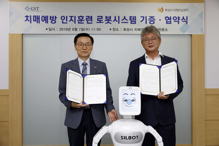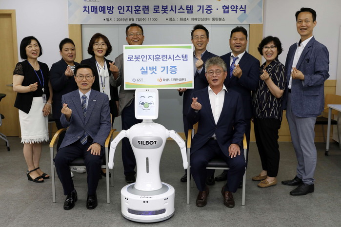 [로컬세계 고용주 기자]경기 화성시는 7일 오전 11시 화성시 치매안심센터 동탄분소 쉼터에서 ㈜글로벌스탠다드테크놀로지(GST)와 치매예방 로봇시스템 기증 및 업무협약을 체결했다고 밝혔다.