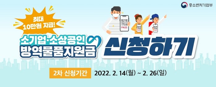 이번 2차 신청은 방역패스가 적용된 소기업·소상공인 중 1차 신청 기간에 신청하지 못한 사업체가 대상이며 오는 25일까지 신청이 가능하다.