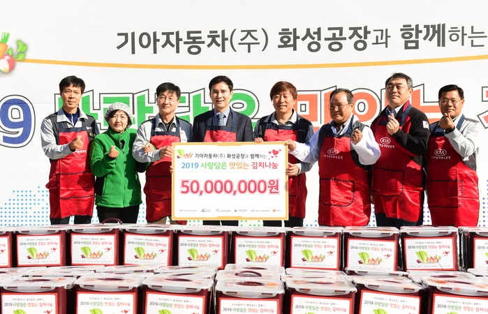 또한 김장에 앞서 기아자동차 화성공장은 어려운 이웃을 위해 5000만 원의 기부금을 전달했다.