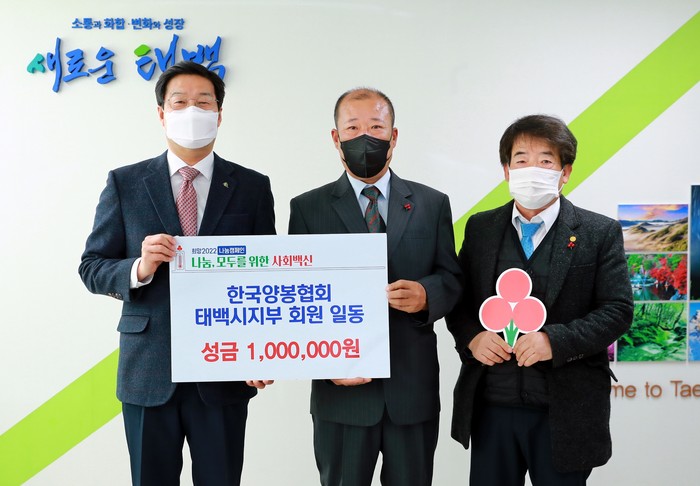 [로컬세계 박상진 기자]한국양봉협회 태백시지부(지부장 김웅성)는 10일 태백시청을 찾아 희망2022 나눔캠페인 이웃돕기 성금 100만 원을 기탁했다.