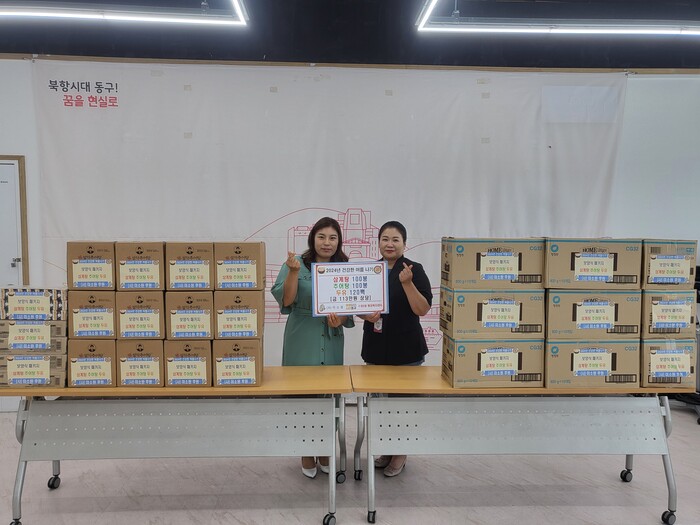 [로컬세계 부산=맹화찬 기자]사단법인 미소원은 지난 14일 부산 동구 수정5동행정복지센터에 113만원 상당의 보양식(삼계탕 100봉, 추어탕 100봉, 두유 120팩)을 지원했다고 16일 밝혔다.