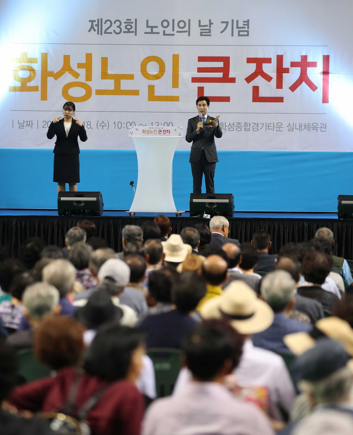 [로컬세계 고용주 기자]경기 화성시가 18일 화성종합경기타운 실내체육관에서 제23회 노인의 날 기념식을 개최했다.
