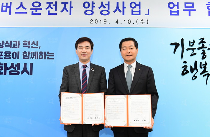 [로컬세계 고용주 기자]경기 화성시는 10일 시청 접견실에서 한국교통안전공단과 ‘버스 운전자 양성을 위한 업무협약’을 체결했다고 밝혔다.