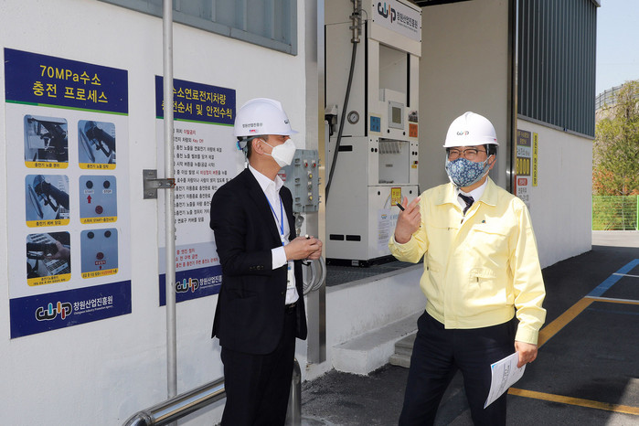 [로컬세계 권인진 기자]허성무 창원시장은 14일 오전 11시 성주동 수소에너지 순환시스템 실증단지, 덕동 수소충전소 및 미래모빌리티 연구지원센터 예정부지를 방문해 안전관리 실태 및 사업추진 현황을 점검했다.