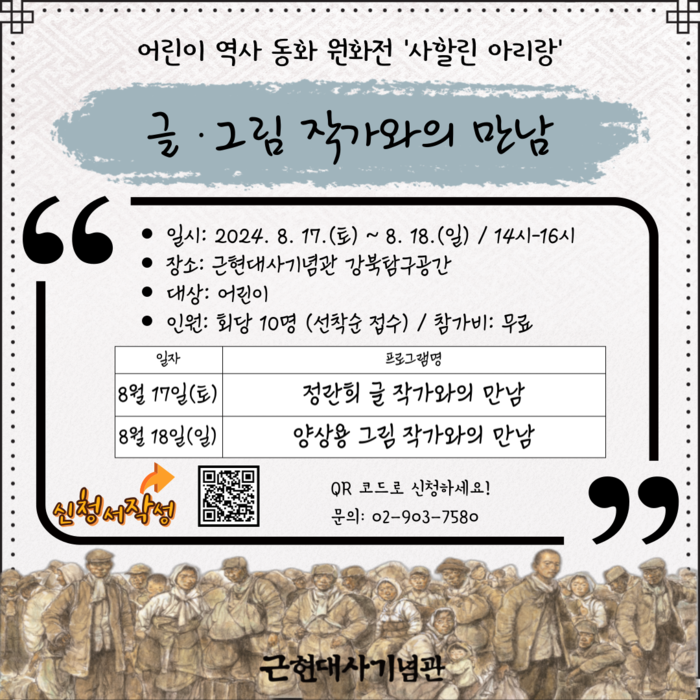 오는 17일(토)과 18일(일)에는 근현대사기념관 1층 강북탐구공간에서 어린이 역사동화 '사할린 아리랑'의 글·그림 작가들과 만남의 시간도 열린다.