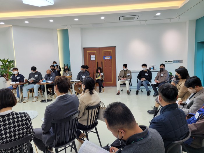 민관 간담회를 마친 이후에 기업들은 부문별로 모여서 사회적기업협의회 정기회의, 마을기업협의회 설립 교육, 교육업종 협동조합 회의, 2022년 (예비)사회적기업 설명회 등을 별도 공간에서 계속 진행했다.