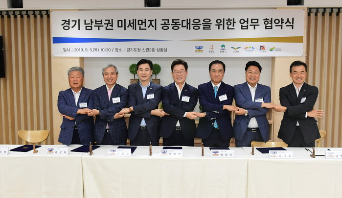 | ▲화성시가 경기도, 경기 남부권 지자체 5곳과 미세먼지 문제 해결을 위해 손을 맞잡았다.(화성세 제공) |