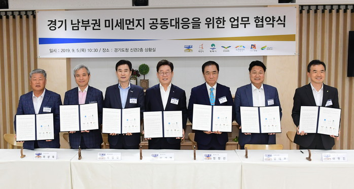 화성시는 5일 오전 경기도청 신관2층 상황실에서 경기도, 평택시, 오산시, 이천시, 안성시, 여주시와 경기남부권 미세먼지 공동대응을 위한 협약식을 체결했다고 밝혔다.