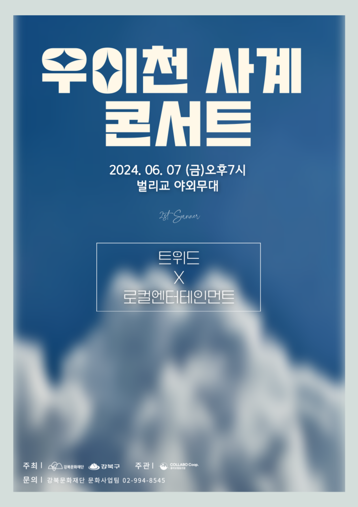 앞서 지난 5월 3일 우이천에서 열린 ‘우이천 사계콘서트 1st Spring’은 강북구 뮤지션들로 구성된 싱어송라이터들이 발라드, 포크, 힙합, 알앤비 무대를 선보여 관객 300여 명이 참석하는 등 호응을 받았다.