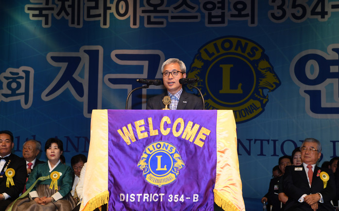 | ▲제41회 국제라이온스협회 354-B지구 연차대회에서 곽상욱 오산시장이 인사말을 하고 있다. |