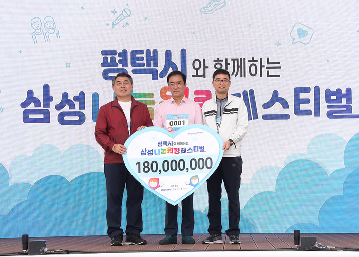 한편, 평택시민과 함께하는 ‘삼성나눔워킹페스티벌’은 2017년부터 2018년까지 총 3만6천여명의 참가자와 함께하며 총 3억6000만원의 기부금이 마련돼, 지역 내 저소득 가정 월동비 지원 및 청소년 장학금 등으로 사용하고 있으며, 시민과 함께 나눔을 실천하는 ‘지역 나눔 축제’로 자리잡아 가고 있다.