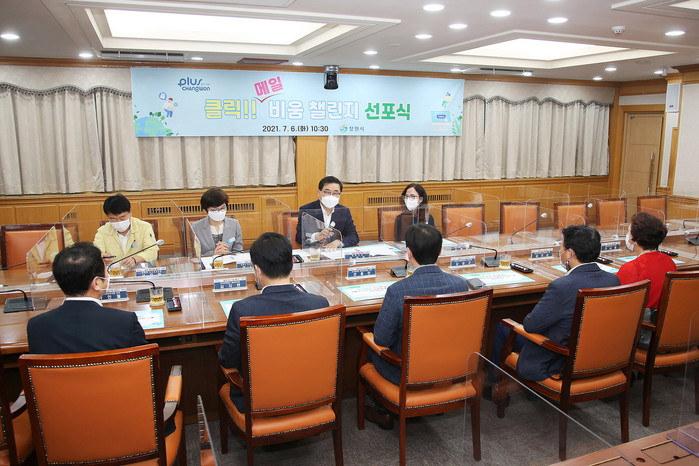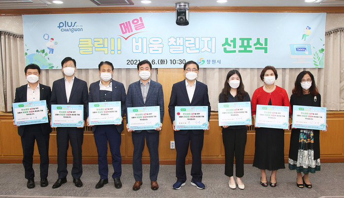 [로컬세계 권인진 기자]경남 창원시는 6일 오전 시정회의실에서 올바른 메일함 관리로 생활속 탄소중립 실천을 위한 ‘클릭! 메일 비움 챌린지’ 선포식을 가졌다. 각 분야 8명의 대표들과 진행했다.
