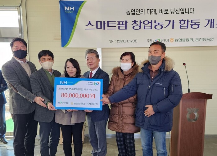 농협중앙회(회장 이성희)는 천안시(시장 박상돈)와 함께 지난 12일 충남 천안시 소재 창업농가의 스마트팜시설에서 동천안농협 '스마트농업지원센터'의 실습교육을 수료한 3개 창업농가가 참여하는 스마트팜 합동 개소식을 개최했다고 13일 밝혔다.