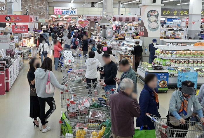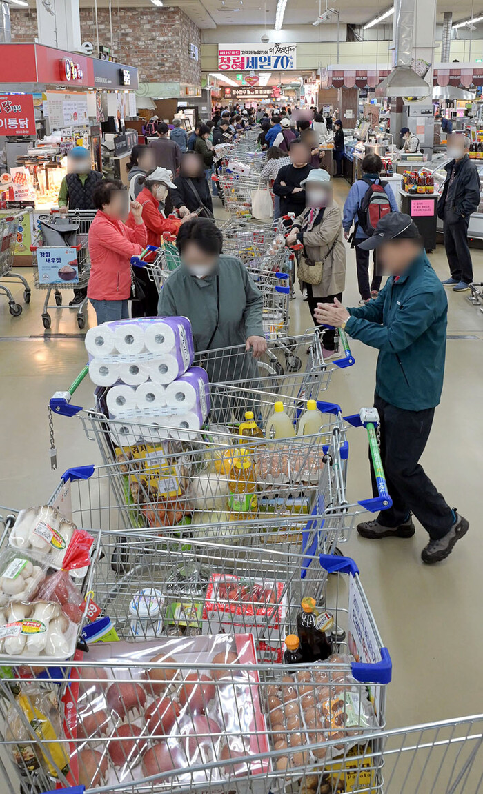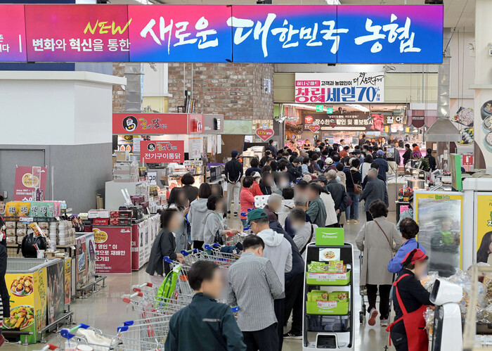 ▲25일 서울 서초구 농협 하나로마트 양재점에서 열린 한우 한 마리 행사장에 고객들이 모여 있다. 농협유통 제공 |