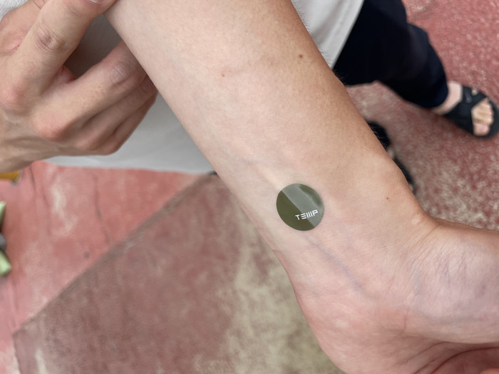 손목, 손등에 부착, 37.5℃ 이상이면 색깔 변해