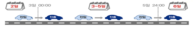 | ▲무료 통행기간 : 10월 2일 진입해 3일 0시 이후에 진출하거나, 5일 24시 이전에 진입해 6일에 진출 하는 차량. |
