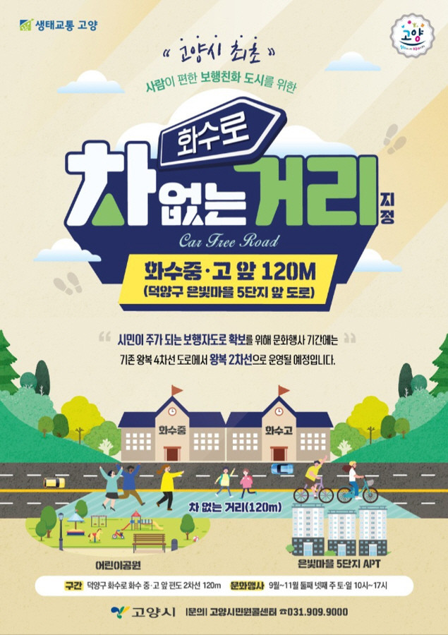 이재준 시장은 “화수중·고 일대의 차 없는 거리가 미래세대와 기성세대가 공동의 생존위기를 인식하고 대응방안을 토론하는 소통의 장이 되기 바란다”며 “시민과 함께 앞으로 전 지구적 기후위기에 앞장서 대응하고 있는 고양시의 행보를 지켜봐달라”고 말했다.