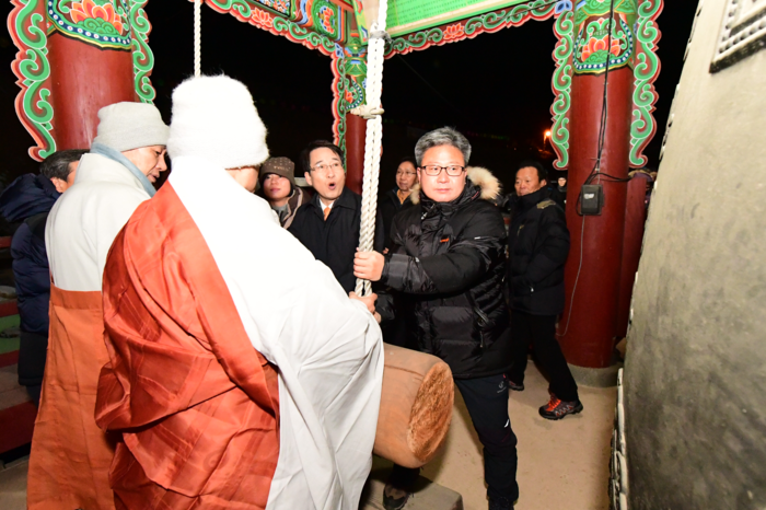 [로컬세계 주덕신 기자]채인석 화성시장은 1일 동탄면에 위치한 무봉산에서 70만 화성시민들의 평안과 행복을 기원하고자 새해맞이 타종식과 안녕 기원제를 가졌다.