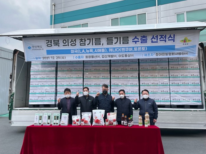 [로컬세계 박상진 기자]경북 의성군은 지난 29일 청아띠농업회사법인에서 경북도 농축산유통국장, 의성 부군수, 청아띠 대표, 수출관계자 등이 참석한 가운데 북미수출을 위한 수출 선적식을 개최했다고 31일 밝혔다.