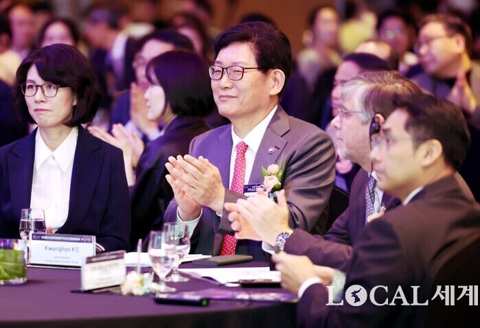 2일 고광효 관세청장이 내빈을 소개하자 박수를 치고 있다. 관세청은 자유무역협정(FTA) 발효 20주년을 기념해 2일부터 4일까지 3일간 서울 인터컨티넨탈 호텔에서 해외 관세당국 및 FTA 관계자 200여 명을 초청해 ‘FTA 2.0 세미나’를 개최한다.