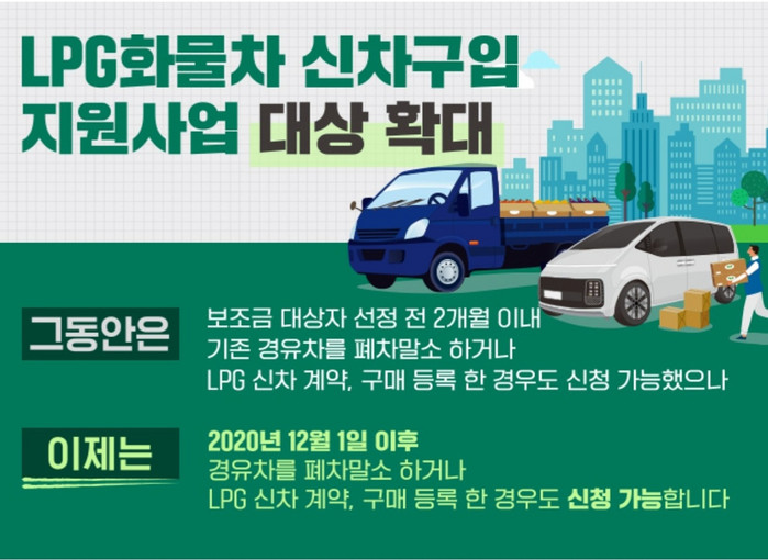 지난해 12월 1일 이후 경유차 폐차 말소, LPG 신차계약, 구매등록 등 3개 중 1개 이상 해당하면 보조금을 신청할 수 있다.