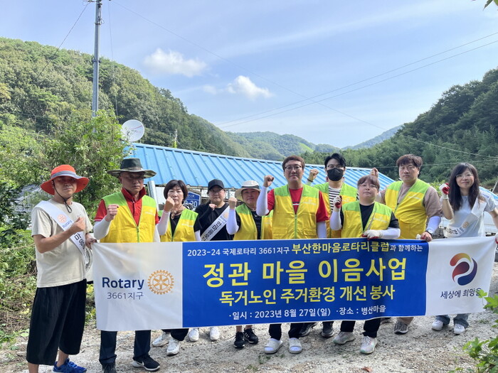 이에 부산한마음로타리클럽은 정관읍행정복지센터와 연계하여 회원 10여 명이 독거어르신을 찾아 집안 곰팡이 등을 제거하고 집 주변에 쌓여있는 쓰레기를 수거하고 생활폐기물을 처리하여 어르신이 쾌적하게 생활할 수 있는 여건을 마련해 주었다.