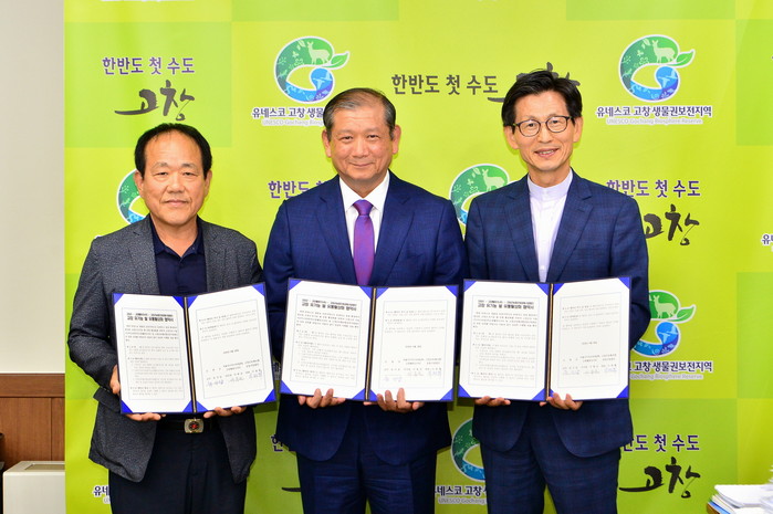 1일 고창군에 따르면 지난달 28일 유기상 군수는 서울시니어스타워(주)고창웰파크시티 및 고창군농협조합공동사업법인이 고창 유기농 쌀 유통활성화를 위한 업무협약을 체결했다고 밝혔다.