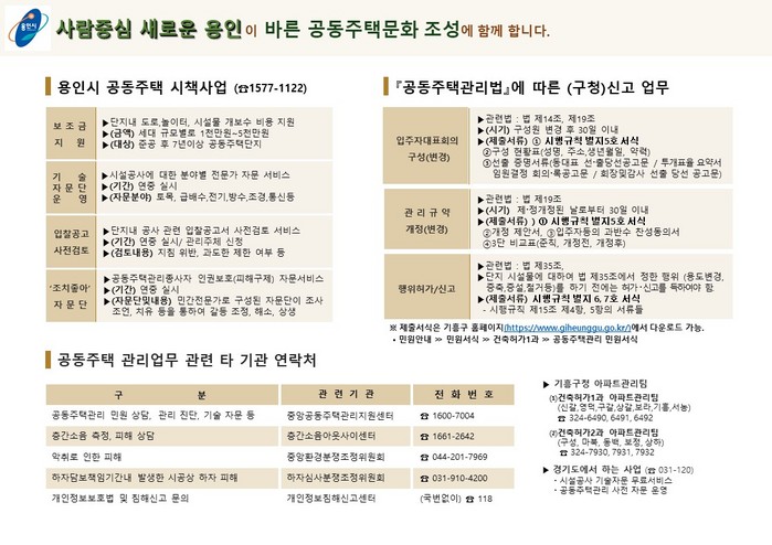 [로컬세계 김병민 기자]경기 용인시 기흥구가 공동주택관리와 관련된 각종 정보를 한눈에 볼 수 있도록 담은 안내지를 제작해 배포했다고 7일 밝혔다.