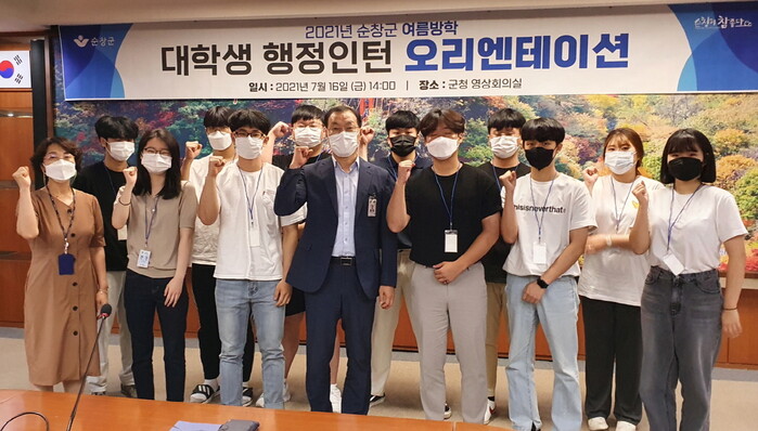 ▲여름방학 행정인턴 오리엔테이션 기념 촬영. 순창군 제공 |