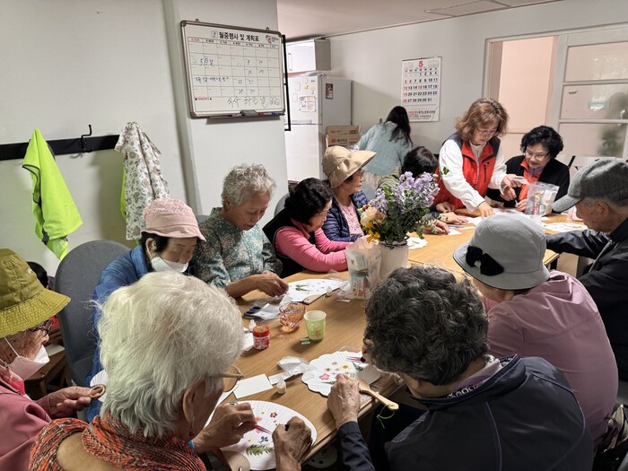이날 기흥동과 동 협의체가 어르신 인지능력 향상을 위해 마련한 부채 만들기 프로그램에는 경로당 및 문해교실 이용 어르신 20여명이 참여했다.