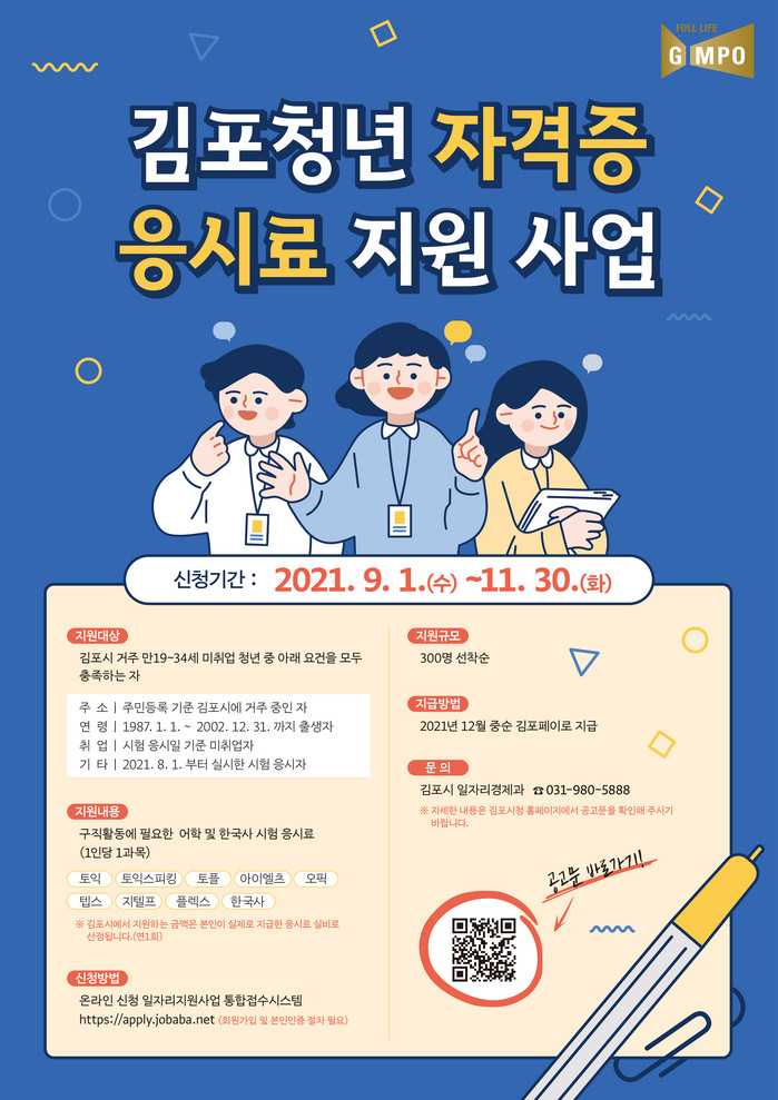 [로컬세계 김병민 기자]경기 김포시는 전국 최초로 청년 취업준비생들의 자격증 응시료를 전면 지원한다고 24일 밝혔다.