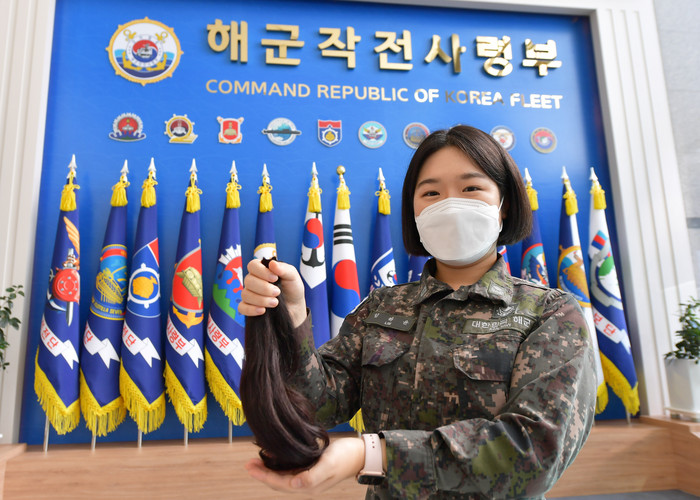 [로컬세계 맹화찬 기자]해군작전사령부(이하 ‘해작사’)에서 근무하고 있는 임하윤 중위(진)이 소아암 환자를 돕기 위해 3년간 소중히 길러온 자신의 머리카락을 어머나 운동본부에 기증하여 주변에 감동을 주고 있다.