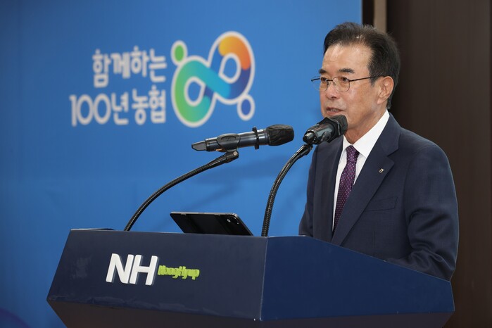 ▲ 4일 서울 중구 농협중앙회에서 열린 '2023 농협 신재생에너지 전국협의회 정기총회'에 참석한 이성희 농협중앙회장이 본 회의에 앞서 인삿말을 하고 있다. 농협 제공 |